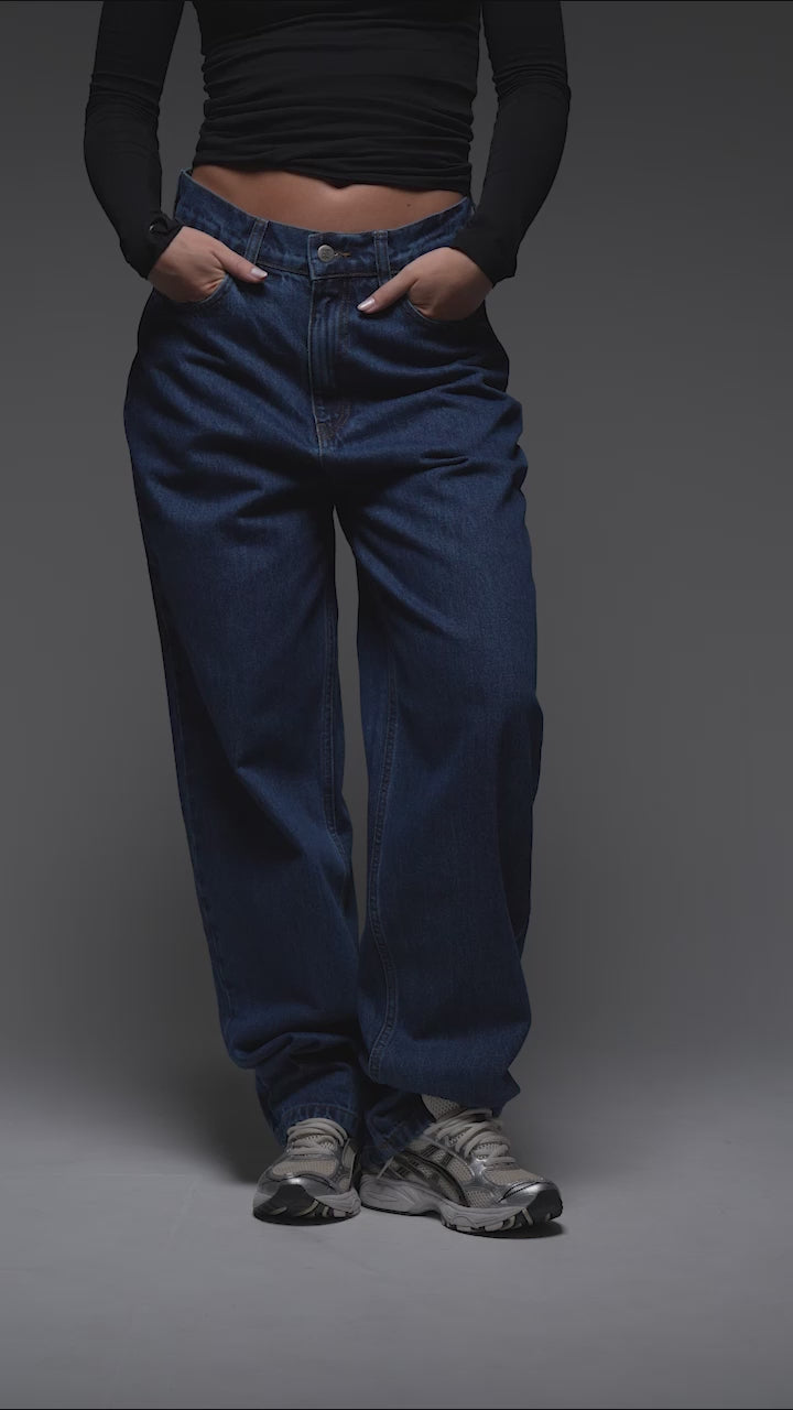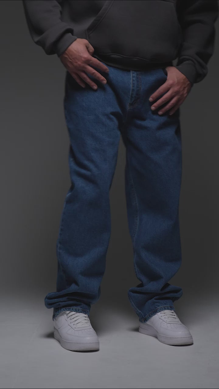 5 Pocket Baggy Blue Stone Washed Denim in de strakke, wijde snit van de jaren 90